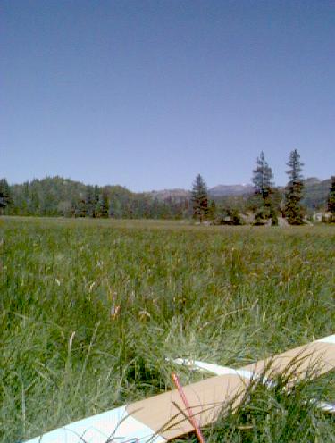 Flying: Set up your highstart or winch facing into the wind, and launch. Dispite the high altitude (about 5000 feet), the thermals are abundant, and winds provide excellent wave lift along the sides of the valley and above stands of trees. Those trees are mighty tall though, so make very sure your plane is well clear of them.