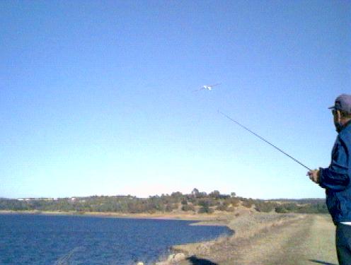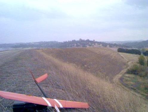 Flying: The first time I flew the place, the wind was anemic from the south, and it started raining, so it was hardly a fair assessment. However, the second time I flew it, the wind was about 25mph from the NW, and it was a real kick. This relatively small slope requires proportionately greater wind for good lift and has a relatively small lift/compression zone, but the zone is l-l-long, the whole length of the dam, and very smooth when blowing from the north. The dog-leg turn in the middle of the dam would be a good place to find concentrated lift in a south wind if it were not for the upwind trees rotorizing the air, but the rest of the dam on both sides has a clear path for the wind. People complain about landing at this site, but the road on the top is very smooth in places, really not a bad place to land. Alternatively, the star thistle on the south slope is a passable spot also, though there are rocks underneath. For really sensitive stuff, you could easily land in the soft grass at the foot of the slope and make the hike down, or land at the ends of the dam in the grass to the side. Landing on the blasted granite slabs on the north face would be . . .er . . . sub optimal. Clearly an artificial site, it is kind of cool to skim several feet off the weeds for the entire length of the dam with nearly the same lift. This is not an ideal slope, but is great with higher winds, and it's proximity to the city and the access of this public property site keep it popular.