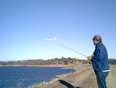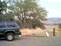 Directions: From I-80 in Roseville (north-east of Sacramento), take the Douglas Blvd. exit and go east on Douglas about 5.2 miles. Turn right/south on Folsom-Auburn Road, and go about 2.5 miles. Turn left/east on Folsom Dam Road about 2.5 miles (across the Folsom Dam--check out the flag!), and turn left/east on Natoma Street. Go about 0.5 miles, and turn left/north into the park toward the "Folsom Point Boat Launch" (formerly "Dyke 8"). Pay your $5 at the check point guard shack, and veer right at the fork, then right again onto gravel to the top of the hill. Park at the yellow steel gate with the stop sign. Gather up your stuff, and walk the 200 yards east down the dirt road to the dike.