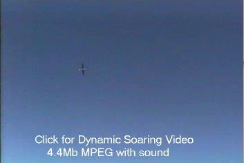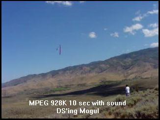 The first 10 second MPEG video is Brian McLean losing his dynamic soaring virginity, looking southwest toward Mogul, flying a borrowed 110" span Viper. He's taking wide circles and keeping it slow partly because he doesn't own the hardware. Wind was about 17 mph.
