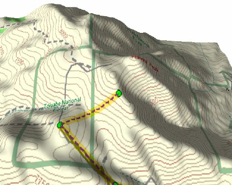 Yahoo map of the Peavine Peak area. You can see the turn off from 395 to Stead Blvd, the frontage road, and Peavine Road (the dirt road to the summit).