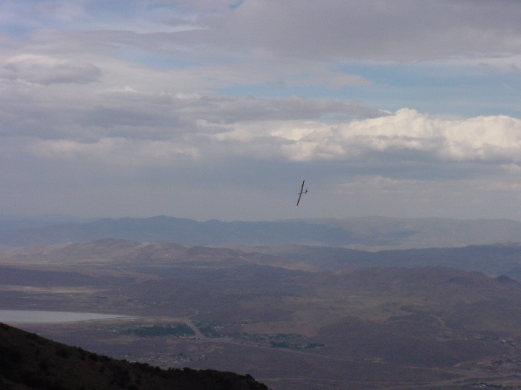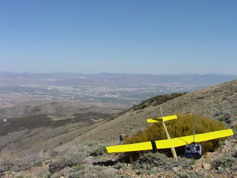 Video: Click here or on the picture at right for a short video of dynamic soaring the east face at Peavine Peak. Rob Crockett flying the Extreme, Brian McLean on the video cam.