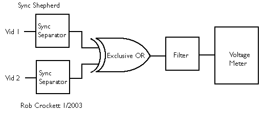 So . . . clearly synchronization of many twin digital cameras can be significantly improved by knowing and allowing for synchronization of the twin cameras' video cycles. You can expect to have a much higher probability that the camera shutters will be sychronized if the camera video cycles are also sychronized. I designed the circuit to show the degree of video cycle signal synchronization.