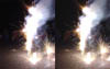 Anyway, the flash sync behaves otherwise just as one would expect with this camera rig. If the camera video/interrupt sync time is less than 0.35 msec, the master flash always shows up on the slave exposure, the 0.35msec being the time from the master shutter opening to the master flash (see above). To considerably extend the flash sync window, one can make the camera with the slower internal electronics the master with the flash, and the flash sync window extends out almost to the length of exposure (at 1/500 sec exposure, the camera video/interrupt cycle can be out of sync as long as 1.2 msec or 1/800 sec and still get perfect flash on the slave exposure. One would think that longer exposures (say 1/30 sec) would just make the video/interrupt sync even less of an issue--it does so by making flash sync possible while further out of video/interrupt sync--but one will start to see more shutter sync "flyers" as the video/interrupt sync gets further out, and flash sync will become less reliable as the video/interrupt sync time increases. With a synchronized power up and both cameras set up the same, shutter sync is very reliable for several minutes if the open flash is on the camera with the slower internal electronics.