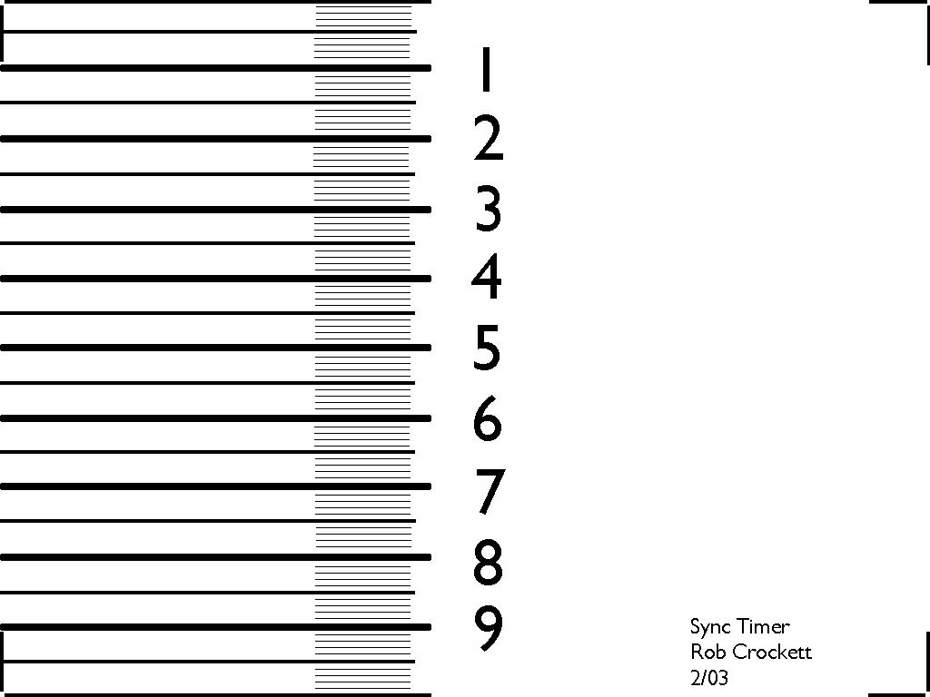 The twin exposures are of my CRT computer monitor while it is displaying a graphic with graduations, with the monitor set at a 75Hz refresh rate (a flat panel/LCD monitor would not work). SYNCSCREEN.JPG:1024x768 JPEG white screen graphic with graduations for sync measurements. I displayed this using the built in Microsoft Windows slideshow feature in "My Pictures" of "My Documents". I selected a screen refresh rate of 75Hz in WindowsMe: Right click desktop/Properties/Settings/Advanced/Adapter/Refresh Rate.