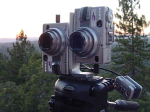 Digital cameras have complex timing issues unique in the field of stereo photography, as previously discussed. However, I've been able to resolve for me many of these issues with my twin cameras simply linking together external wired remote controls, allowing me to power up the cameras together and trigger the shutters electronically.